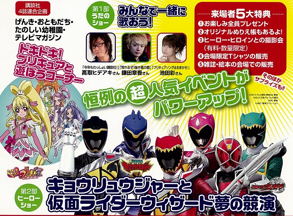 内容は、戦隊ショーを中心としていて、女の子向けのショー、今でいうと、プリキュアショーもやっています。また、戦隊ヒーローやプリキュアの歌のLIVEも一緒にやっていますね。